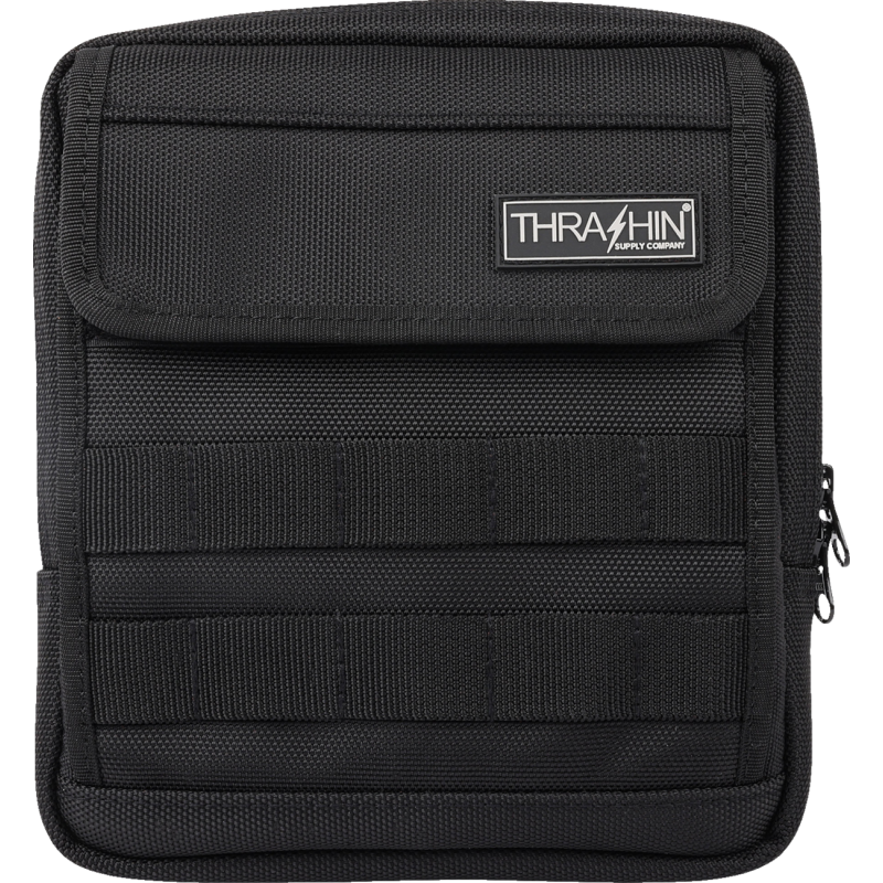 An expandable slim storage bag constructed from durable 1680D ballistic nylon. It mounts on the front or rear of risers and features a high-viz orange interior, a microfiber-lined front pocket for electronics, and MOLLE webbing.