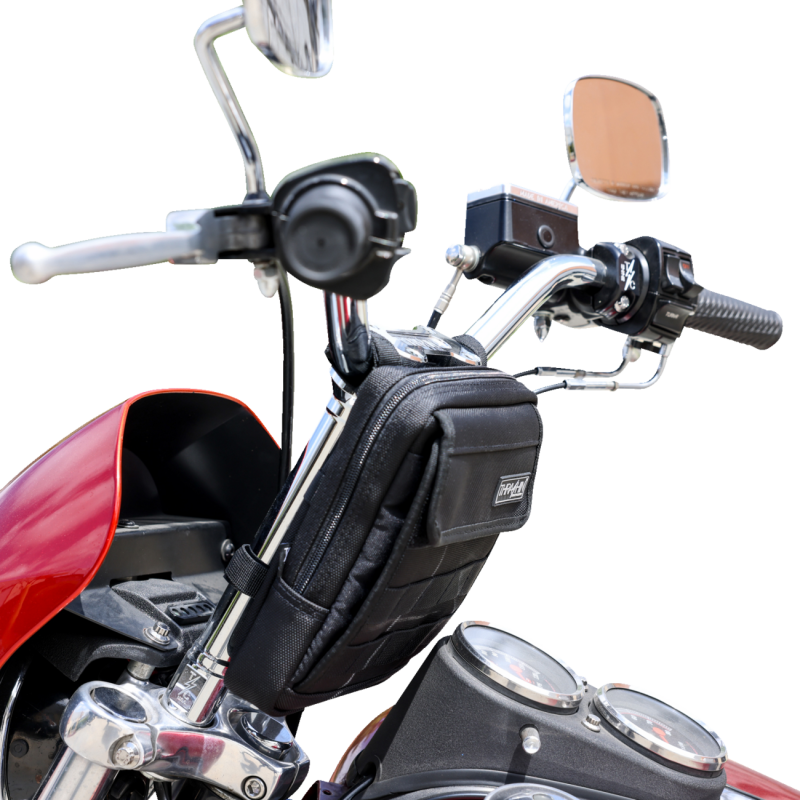 • Versatile design allows it to mount on the front or rear of risers while providing a slim profile to fit in between fairings and gas tanks