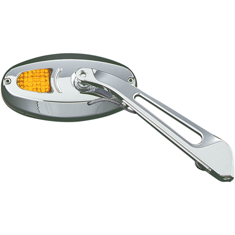 Custom mirrors that look great coming or going. Amber LEDs can be used as running lights or auxiliary turn signals. Available with flat glass. Mirror stems measure approximately 7" with 5 1/4" x 2 3/4" mirror heads. Include load equalizer and hardware for various applications. Sold in pairs. NOTE: Not DOT compliant.