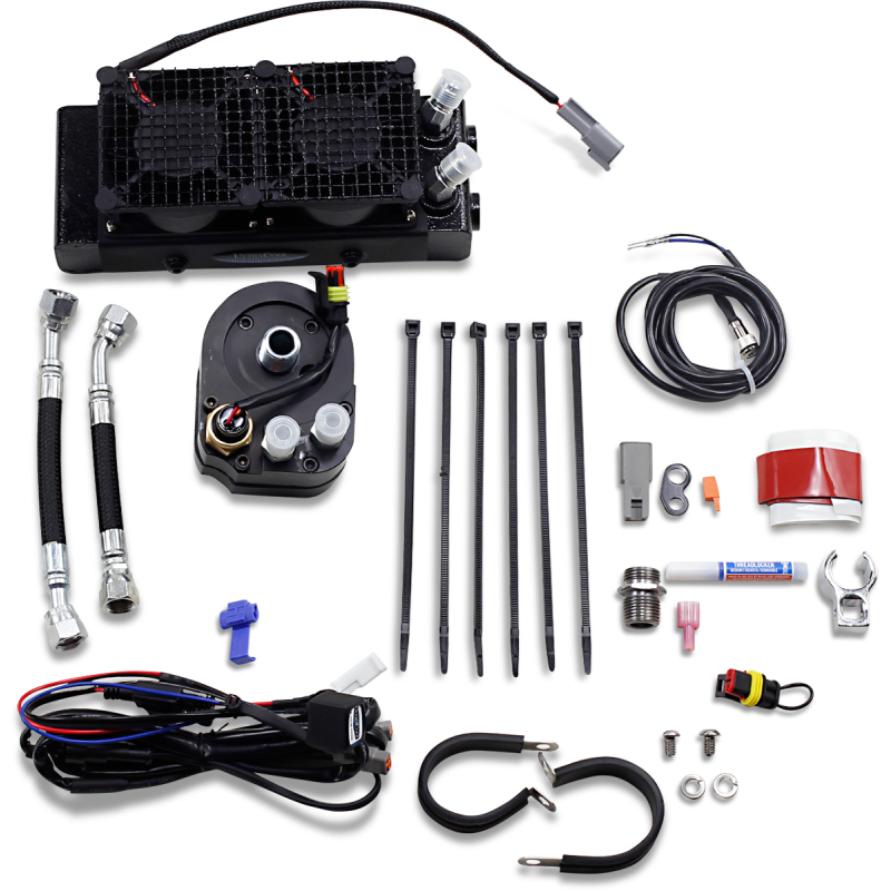 Sealed waterproof IP68 fans produce 220 CFM of airflow. Oil adapter and thermal switch automatically turn on the dual fans when your oil reaches 210 °F. Specially designed aluminum heat exchanger with turbulators for maximum heat dissipation.