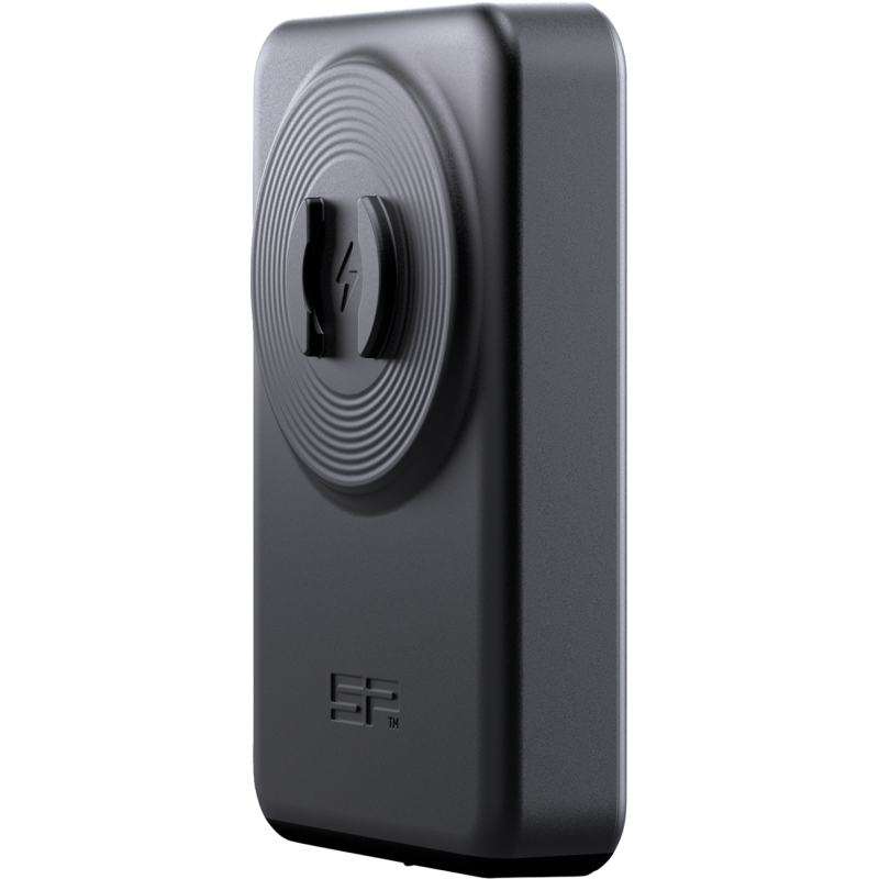 Compact wireless power bank with 10W output and 5,000mA capacity. Connects to your SPC+ phone case with the twist-to-lock mechanism for wireless charging. Recharges via USB.