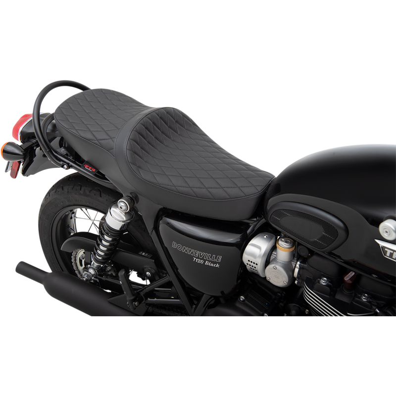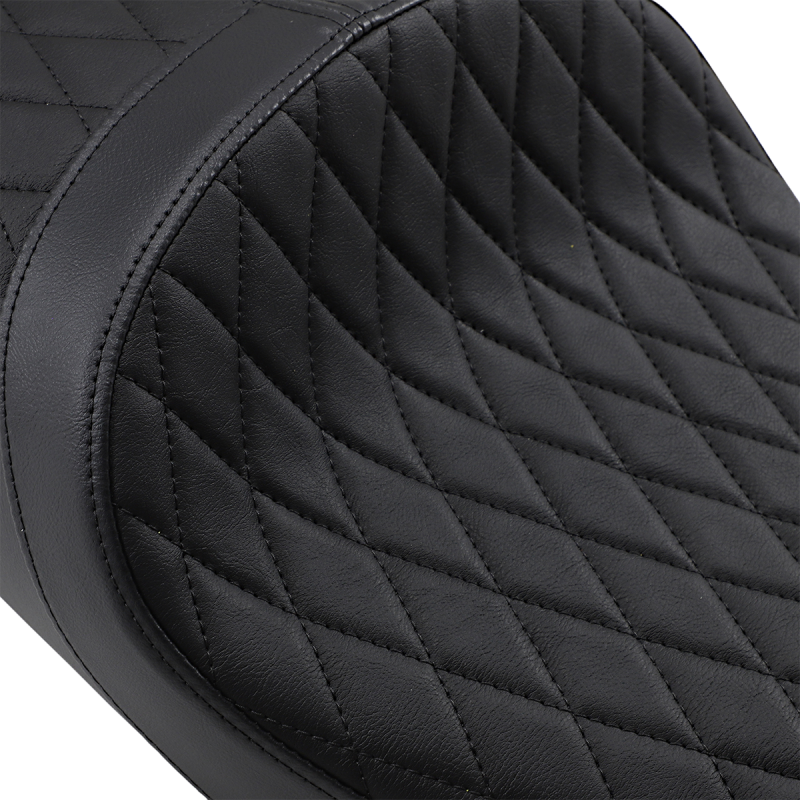 Contoured for maximum comfort for rider and passenger. The seat is made narrow up front for better leg clearance. Features a molded flexible urethane foam interior, a 3/16" ABS thermoformed seat base for a perfect fit, and a fully carpeted bottom with rubber bumpers to protect paint. Includes all mounting hardware and features a high-quality automotive-grade vinyl cover. Made in the U.S.A.