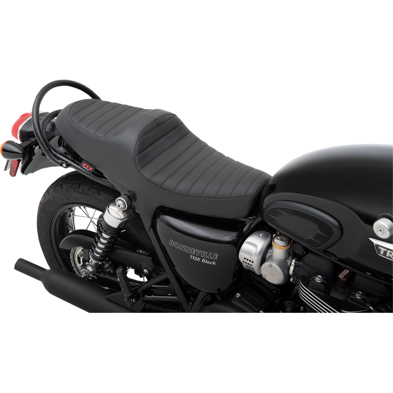 High-quality, automotive-grade vinyl cover with a molded urethane foam interior for maximum comfort and styling. The seat is made narrow up front for better leg clearance and features a 3/16" ABS thermoformed seat base for a perfect fit with a fully carpeted bottom and rubber bumpers to protect paint. Includes all mounting hardware. Triumph fitments have 4" rise; Yamaha fitments have 6 1/2" rise. Made in the U.S.A. NOTE: Z1R Seats will not work with the C-SPEC model rear shroud.
